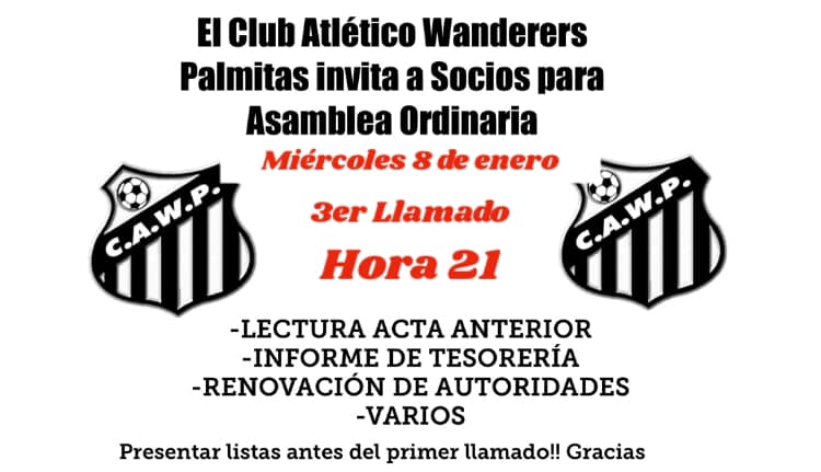 Este miércoles 8 de enero se estará desarrollando el tercer llamado a la Asamblea Ordinaria de Socios del Club Atlético Wanderers.