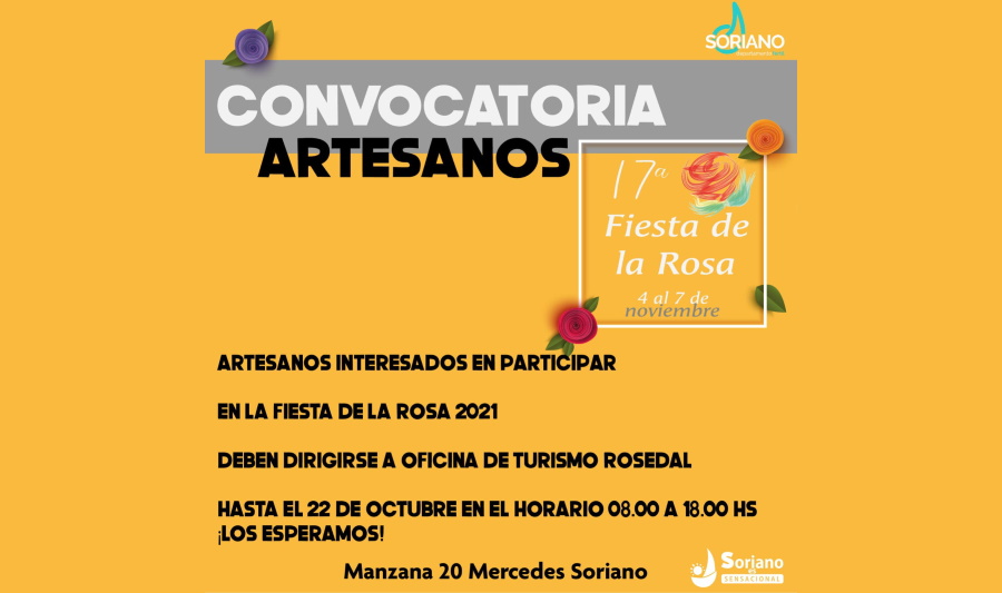 El Municipio de Palmitas está realizando una convocatoria a artesanos que deseen participar de la Fiesta de la Rosa en su edición N°17 que será del 4 al 7 de noviembre de 2021.